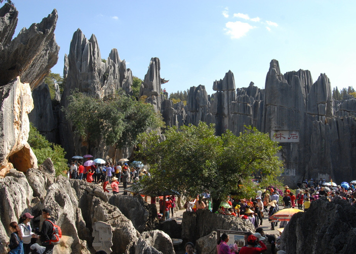 Stone Forest: Located 86km away from Kunming, Stone Forest is the most famous site in Kunming. Walking through it, visitors will marvel at the natural stone masterpieces and are bewitched by the intricate formations. The magnificent, strange and steep landscape creates countless labyrinthine vistas. There is a local saying: "It is a waste of time not to visit the Stone Forest while visiting Kunming", which vividly expresses the deep love of the local people toward this world wonder. The quintessential karst landscape makes every tourist lost in wonder.
