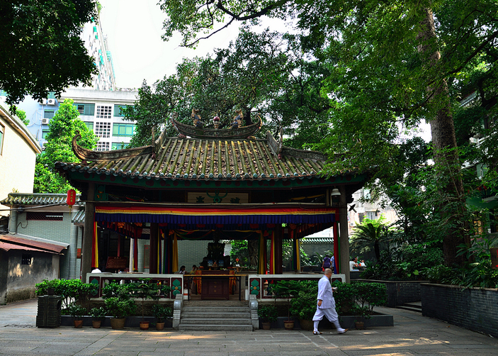Temple of the Six Banyan Trees: Temple of the Six Banyan Trees, situated on Liurong Road, was constructed in the third year of Datong in the Southern Dynasty, and was originally named Baozhuangyan Temple. The temple has a history stretching back some 1,400 years and has seen many ups and downs. Having been raized to the ground by fire in the Northern Song Dynasty, it was rebuilt in the second year of Ruigong in the Song Dynasty and was subsequently named Jinghui Temple. In 1100, the famous writer and calligrapher, Su Dongpo, visited this temple, and wrote the two words, “Six Banyan” after seeing the six old banyan trees near the temple. From this time, the temple has been known as the Temple of the Six Banyan Trees and was adjudged as one of the Top Ten Attractions in Guangzhou in 1997.