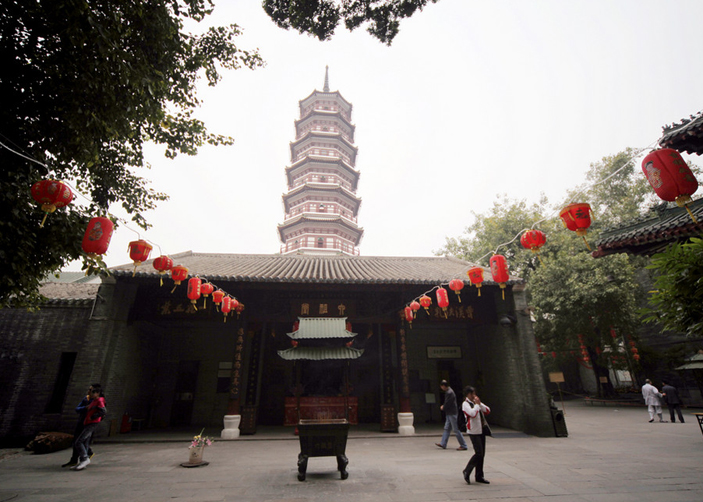 Temple of the Six Banyan Trees: Temple of the Six Banyan Trees, situated on Liurong Road, was constructed in the third year of Datong in the Southern Dynasty, and was originally named Baozhuangyan Temple. The temple has a history stretching back some 1,400 years and has seen many ups and downs. Having been raized to the ground by fire in the Northern Song Dynasty, it was rebuilt in the second year of Ruigong in the Song Dynasty and was subsequently named Jinghui Temple. In 1100, the famous writer and calligrapher, Su Dongpo, visited this temple, and wrote the two words, “Six Banyan” after seeing the six old banyan trees near the temple. From this time, the temple has been known as the Temple of the Six Banyan Trees and was adjudged as one of the Top Ten Attractions in Guangzhou in 1997.