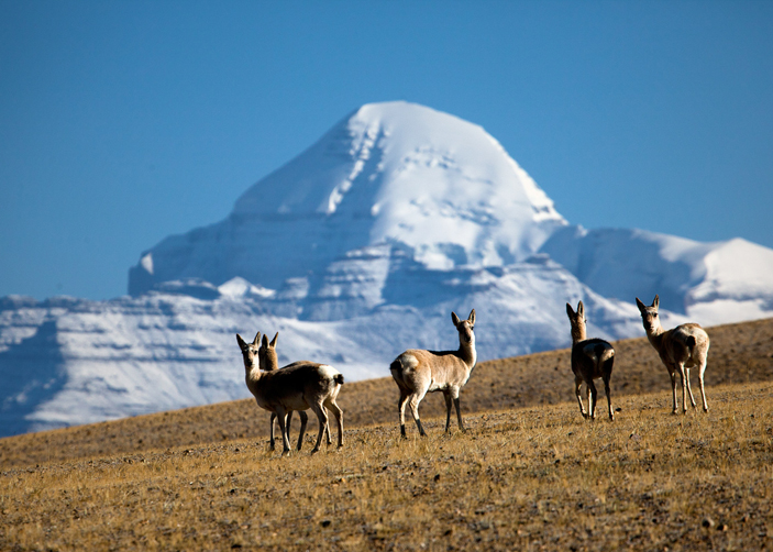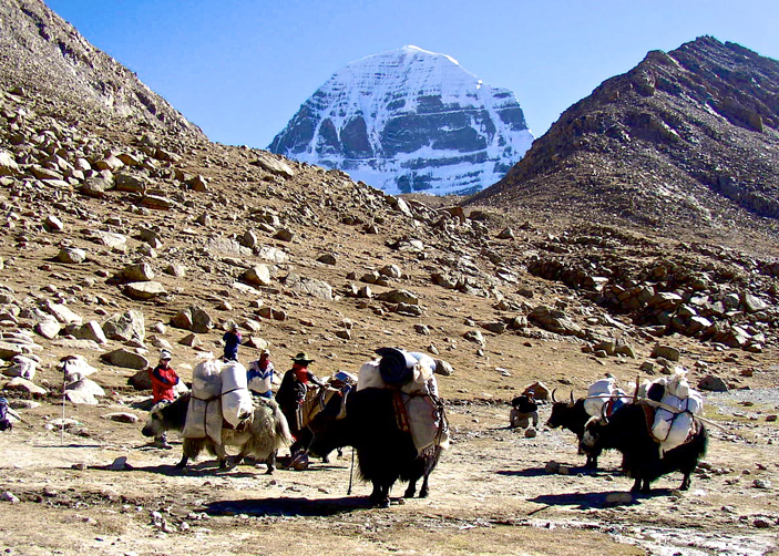 Mt. Kailash: Neighboring Lake Manasarovar, Mount Kailash is a sacred mountain by four religions: Buddhism, Hinduism, Jainism and Bon. Pilgrims believe that circumambulating Mt. Kailash on foot is a holy ritual that will bring good fortune. and wash away their sin. The path around Mount Kailash is 52km long, Hindus and Buddhists walk clockwisely around the Mt.Kalaish, while followers of Jain and Bonpo religions walk counter-clockwisely.