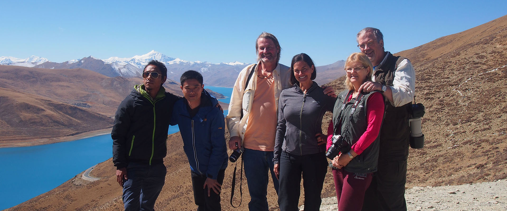 Yamdrok Lake: Which is one of the 3 most sacred lakes in Tibet. It is a lake of 72km long, fed by numerous small streams and sourrounded by snow covered mountains. The two long arms of water, makeing it look like a scorpion from the sky. According to legend, Yamdok Lake is the transformation of a goddess.