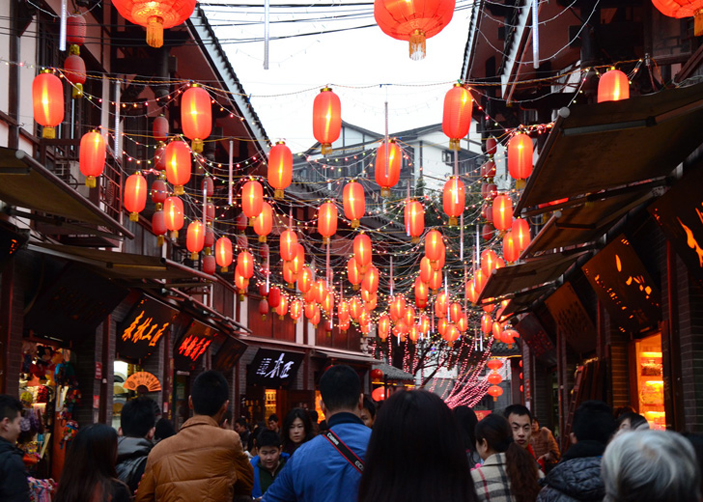 Ciqikou Old Town: Perched on a hill overlooking the Jialing River in the west of the city, Ciqikou Old Town, which means Porcelain Village in Chinese, dates back to the late Ming Dynasty (1368-1644). You will see lots of Ming and Qing Dynasty architecture, local shops, tea houses, local Sichuan street performance and more.